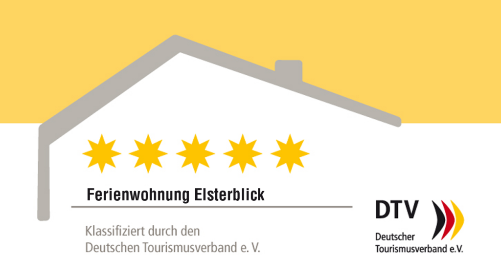 Der Deutsche Tourismusverband hat der Ferienwohnung »Elsterblick« die Höchstnote (5 Sterne) verliehen.