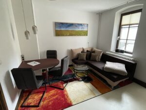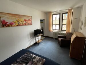 Bestehend aus 2 Räumen sowie einem Bad mit Wanne liegt die Ferienwohnung »Hofblick« im 1. Obergeschoss auf der Sonnenseite der Mühle. Das Doppelbett bietet zwei Personen eine gemütliche Übernachtungsmöglichkeit*. (TV und WLAN stehen selbstverständlich kostenfrei zur Verfügung.